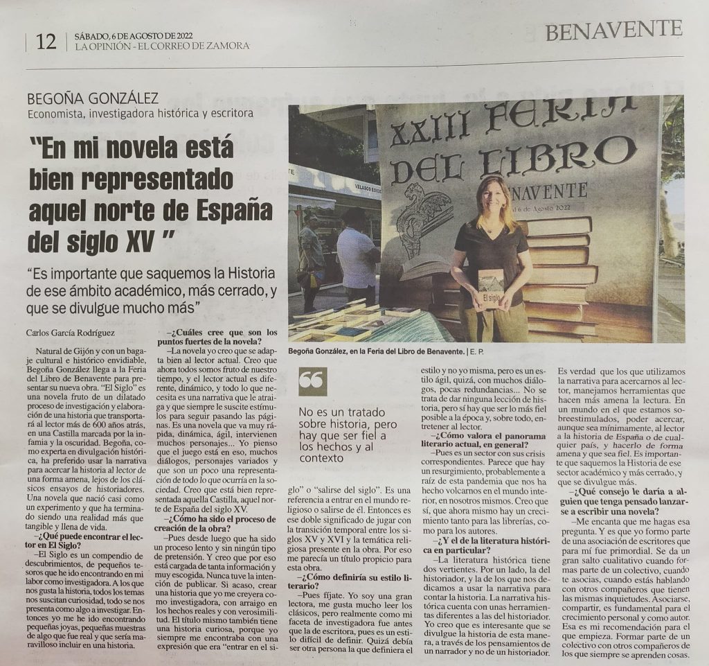Carlos García Rodríguez entrevista a la autora gijonesa, Begoña González, para hablar de su novela histórica, El siglo (Velasco Ediciones, 2022).